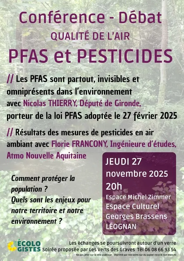 Conférence PFAS et Pesticides le 27 novembre à Léognan