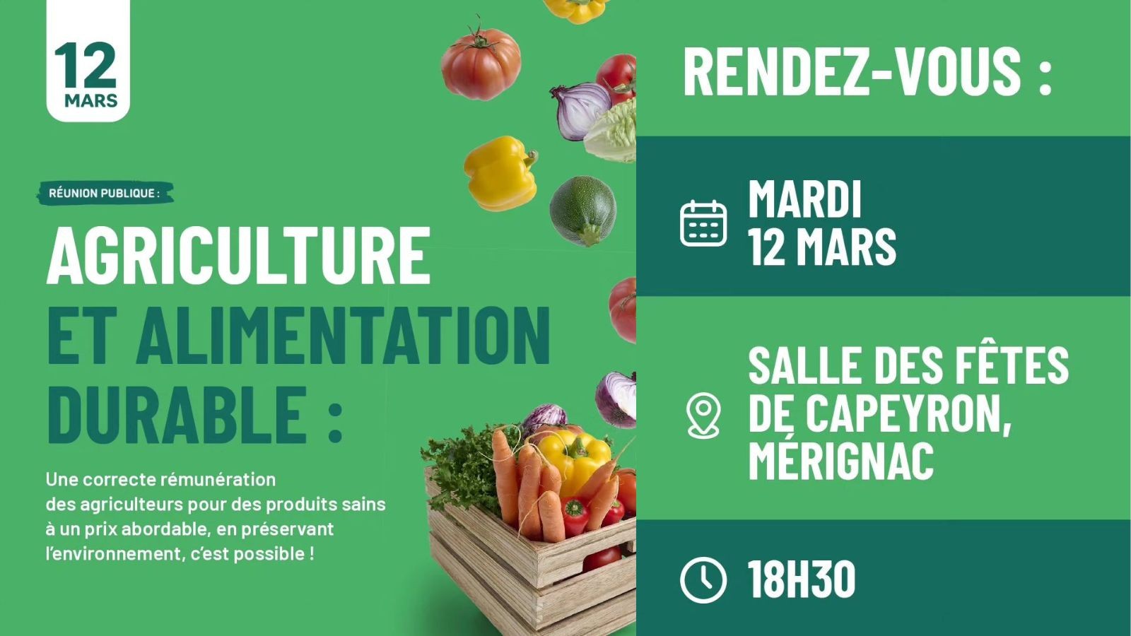 Réunion publique le mardi 12 mars à Mérignac - Agriculture et Alimentation