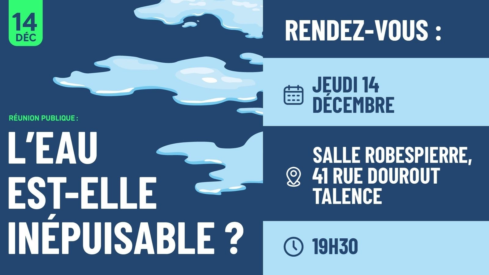 L'eau est-elle inépuisable ? réunion publique à Talence le Jeudi 14 janvier